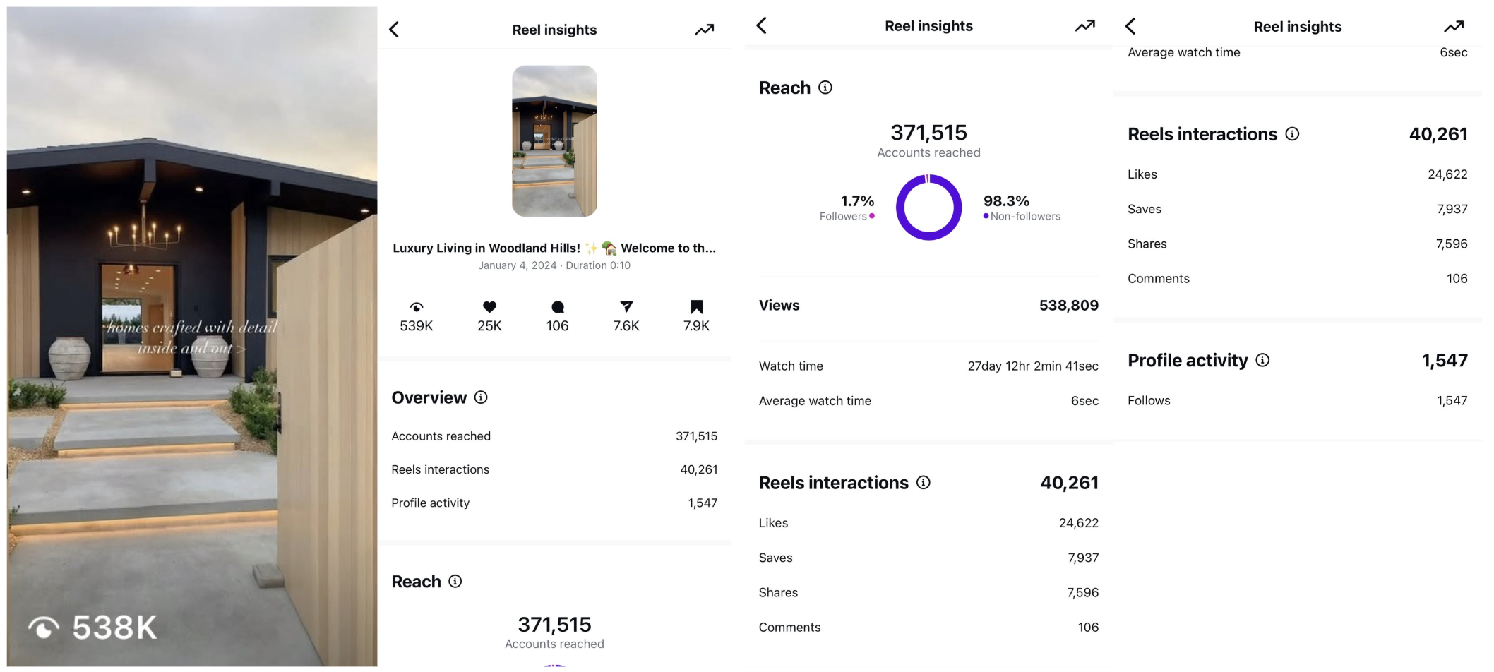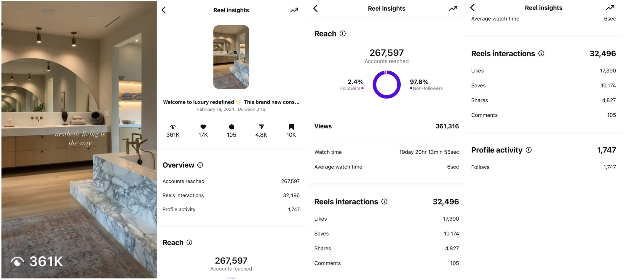 The brand continues to see growth and increased qualified leads, enhanced through elevated visual execution and aesthetic content creation. Periods of virality have driven the highest growth periods and overall created a community that identifies with the love of luxury homes.